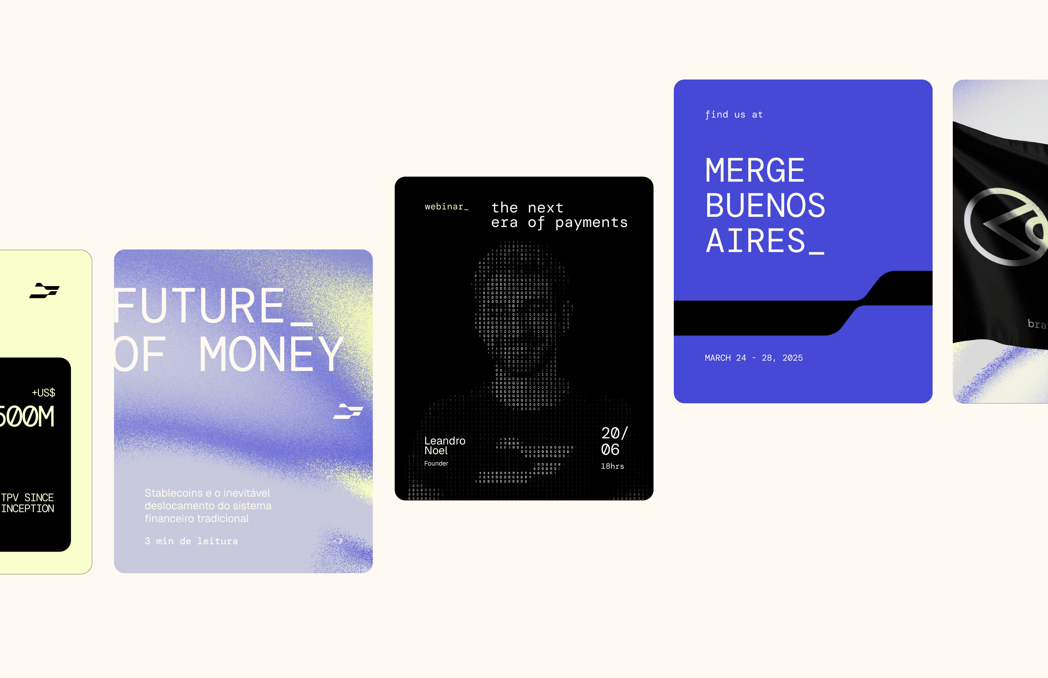 The inspiration for the name comes from avenues, representing movement, direction, and connection. Graphic elements incorporate numerical and typographic references — universal codes of money and technology. The gradient expresses the idea of liquid boundaries, dissolving geographic and financial limits. Soft colors reinforce the sense of fluidity, ease, and lightness, while the typography conveys security and solidity.